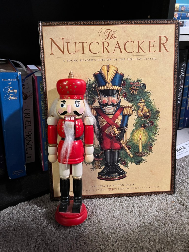 When I was seven years old, I received a gift set for Christmas that included a huge picture book of the story and a wooden nutcracker toy. I played with that nutcracker so much that my dad had to super-glue his arm, his beard, and his hat back into place. To this day, that picture book, whose illustrations captivated me so much, still sits in my library and the nutcracker goes back on display every holiday season.